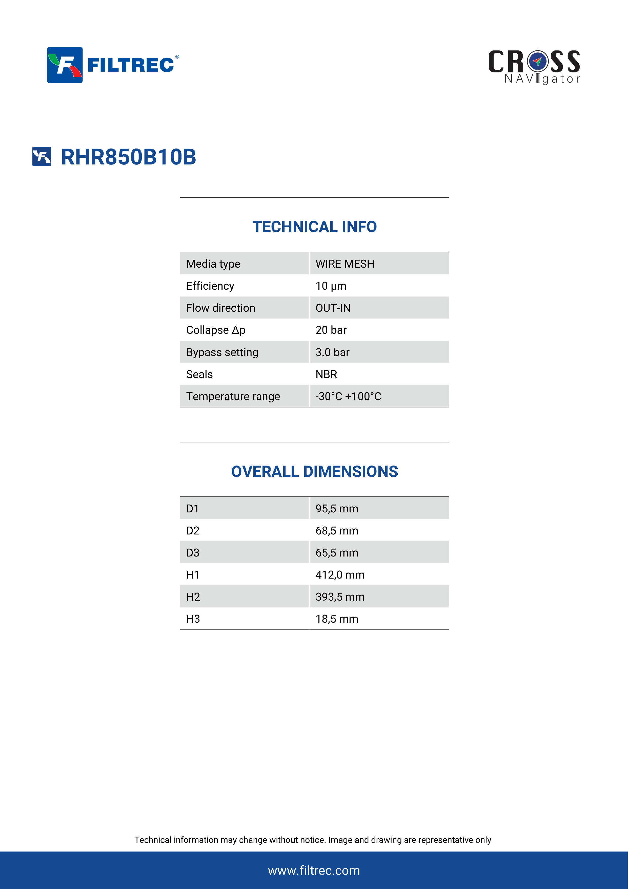 The efficiency of the element is shown using the Micron (µ) and Beta (β) ratings. The micron rating indicates the size of the particle being filtered and the beta rating the efficiency, calculated as 1/β.