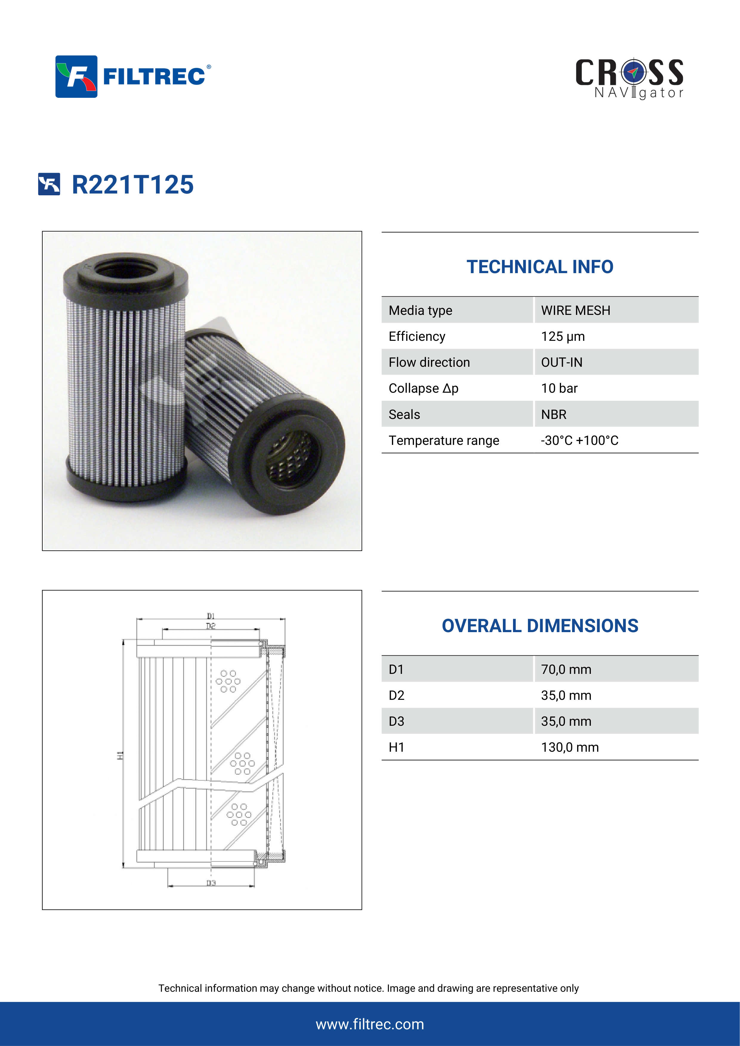 Genuine Filtrec R221T125. This Filtrec element is designed to meet or exceed the quality and performance of brand OEM’s ensuring superior filtration performance and long-lasting durability.