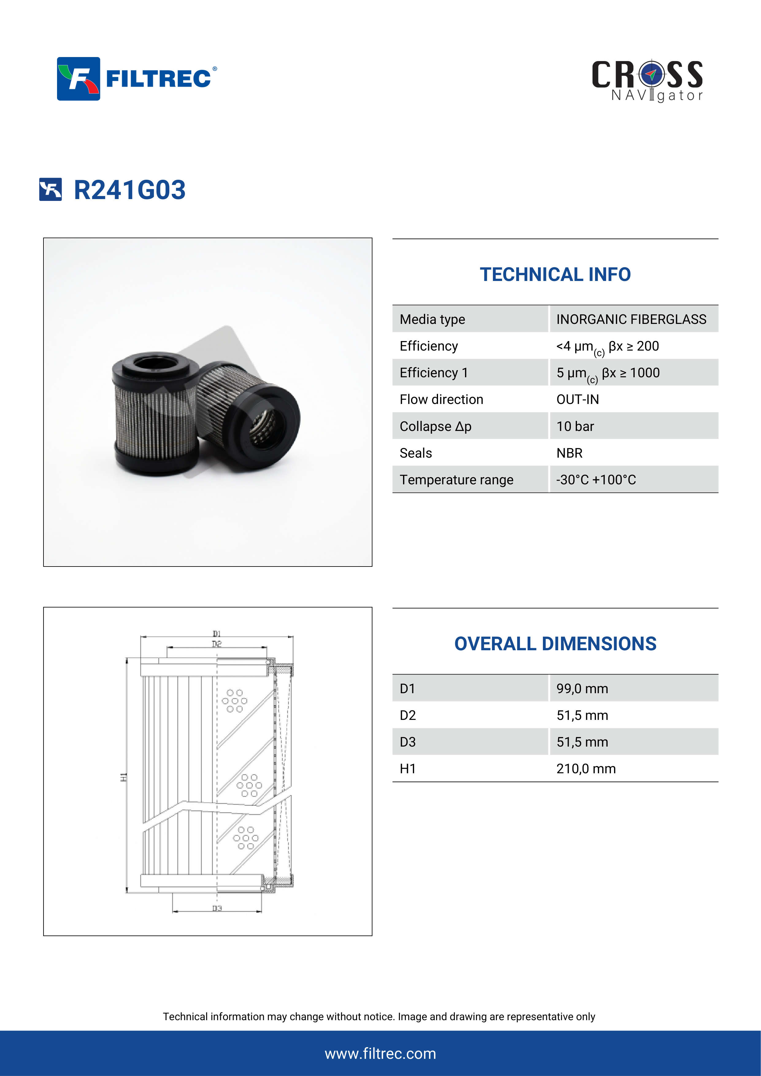 Genuine Filtrec R241G03. This Filtrec element is designed to meet or exceed the quality and performance of brand OEM’s ensuring superior filtration performance and long-lasting durability.