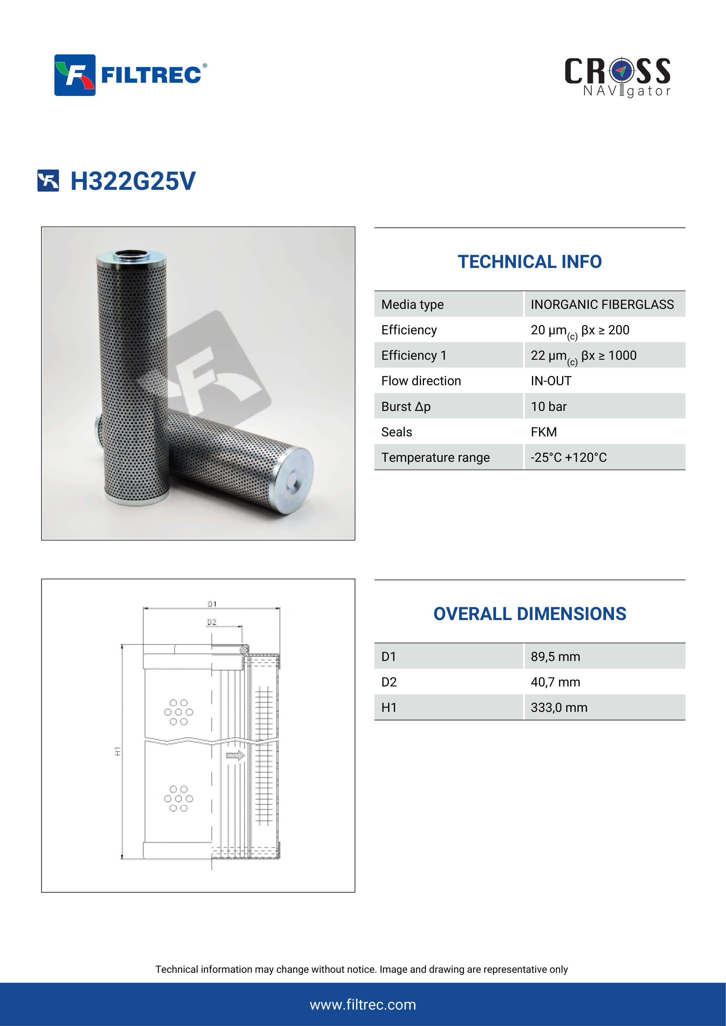 The efficiency of the element is shown using the Micron (µ) and Beta (β) ratings. The micron rating indicates the size of the particle being filtered and the beta rating the efficiency, calculated as 1/β.