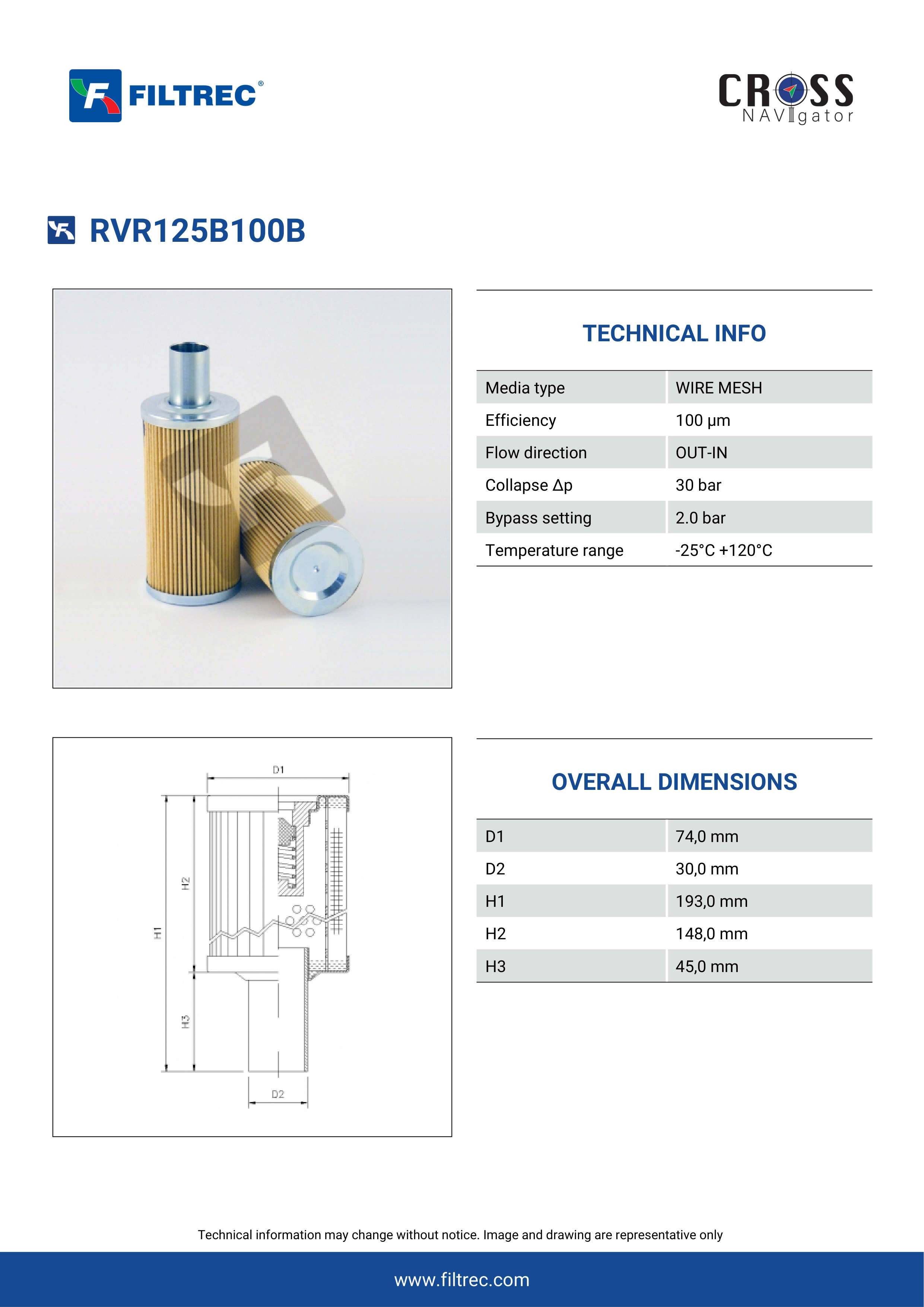 Filtrec RVR125B100B Replaces the FilterFinder FF200833B