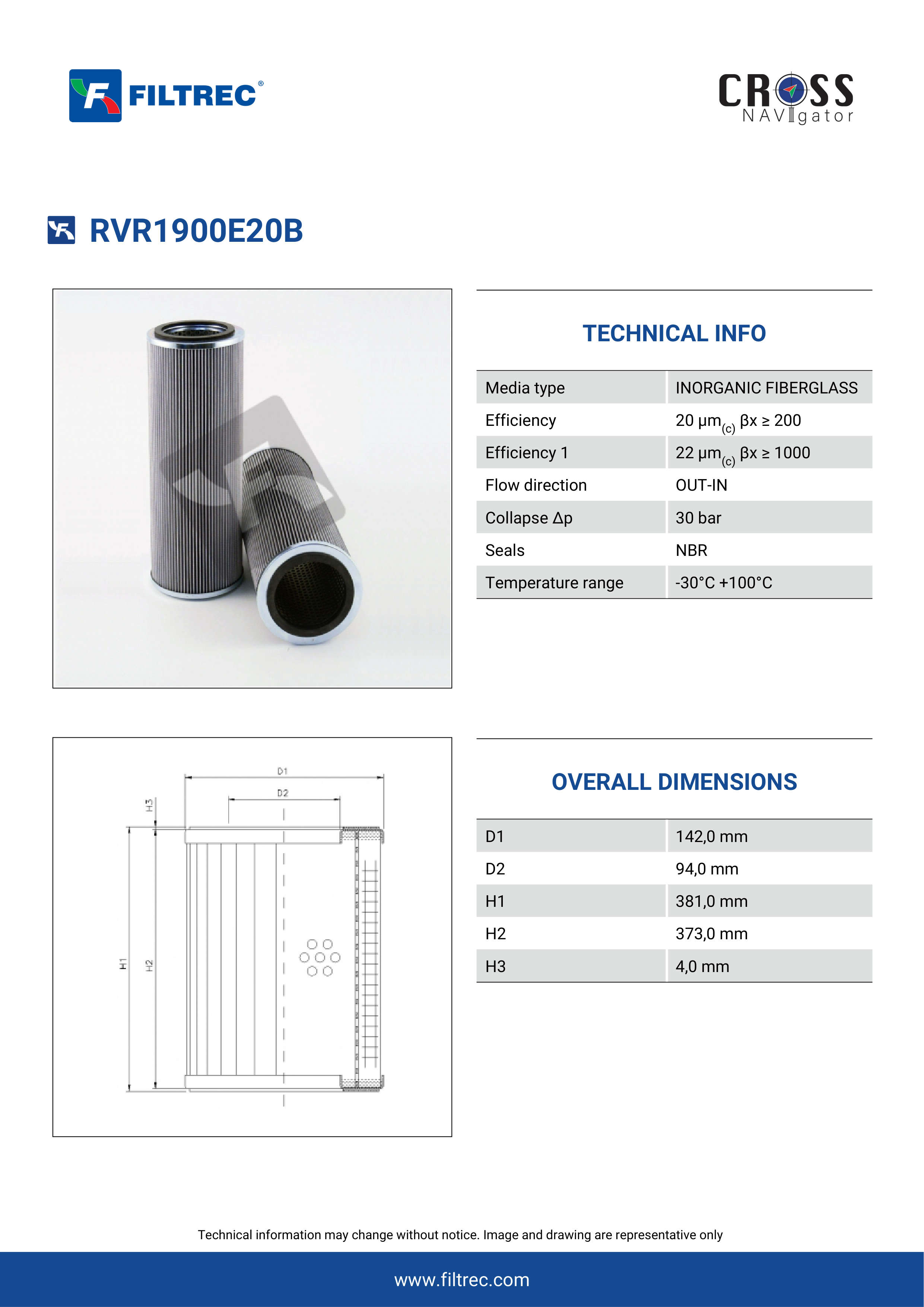 Filtrec RVR1900E20B Replaces the FilterFinder FF200940B