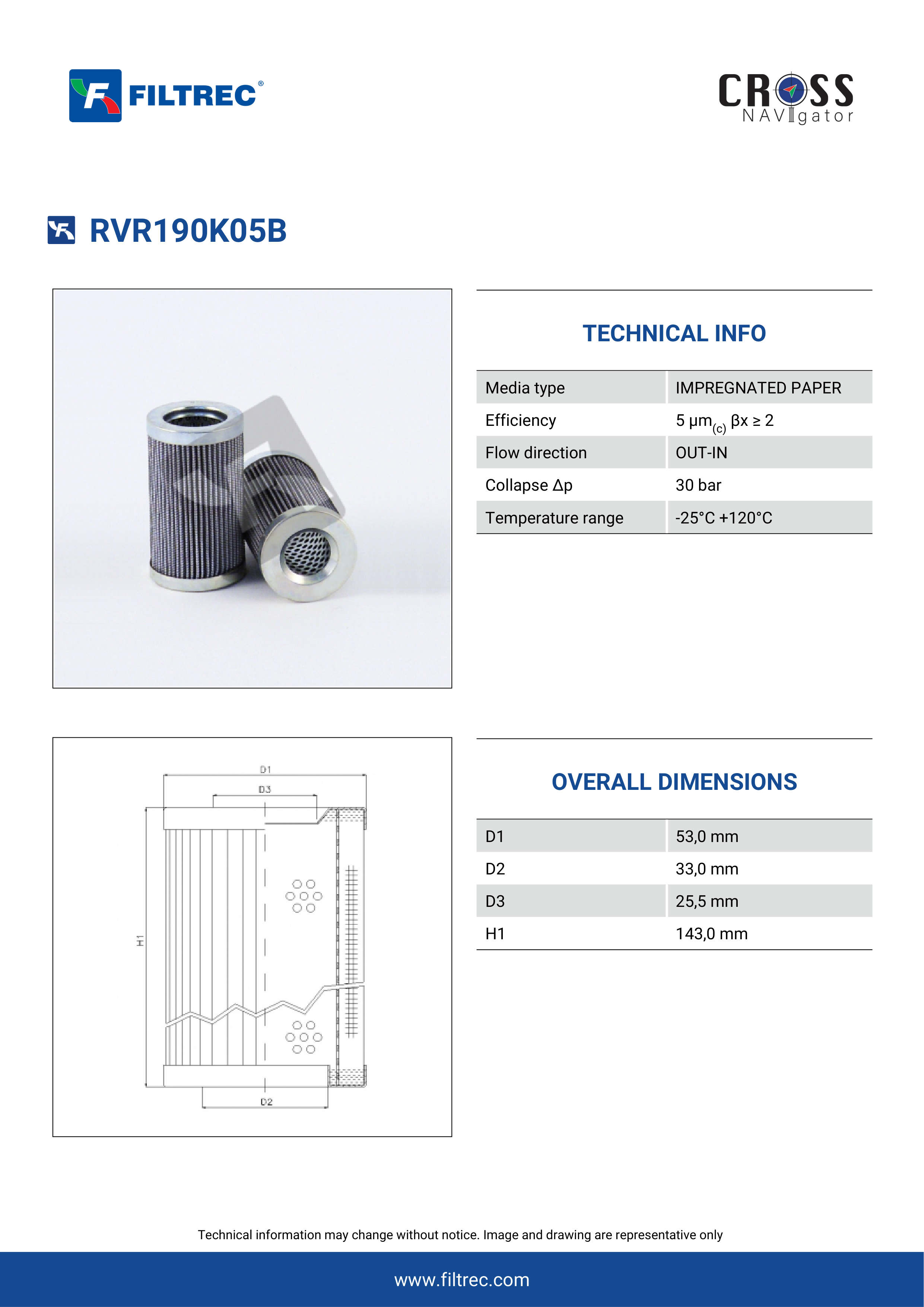 Engineered with their high performance media and a durable design, the RVR190K05B provides reliable and consistent performance over its lifespan, even in harsh operating environments. When you order from FilterFinder, you can trust that you are getting a reliable and high-quality replacement filter that will keep your system running smoothly.