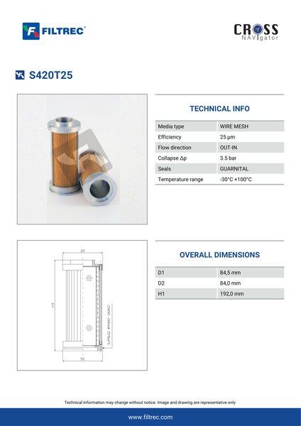 Filtrec S420T25 Replaces the FilterFinder FF202633B