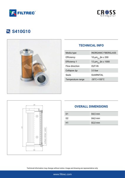 Genuine Filtrec S410G10. This Filtrec element is designed to meet or exceed the quality and performance of brand OEM’s ensuring superior filtration performance and long-lasting durability.