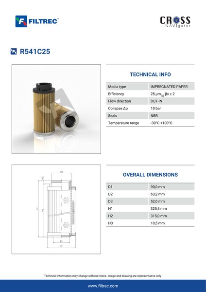 Engineered with their high performance media and a durable design, the R541C25 provides reliable and consistent performance over its lifespan, even in harsh operating environments. When you order from FilterFinder, you can trust that you are getting a reliable and high-quality replacement filter that will keep your system running smoothly.