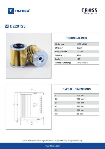 Filtrec D220T25 Replaces the FilterFinder FF202775B