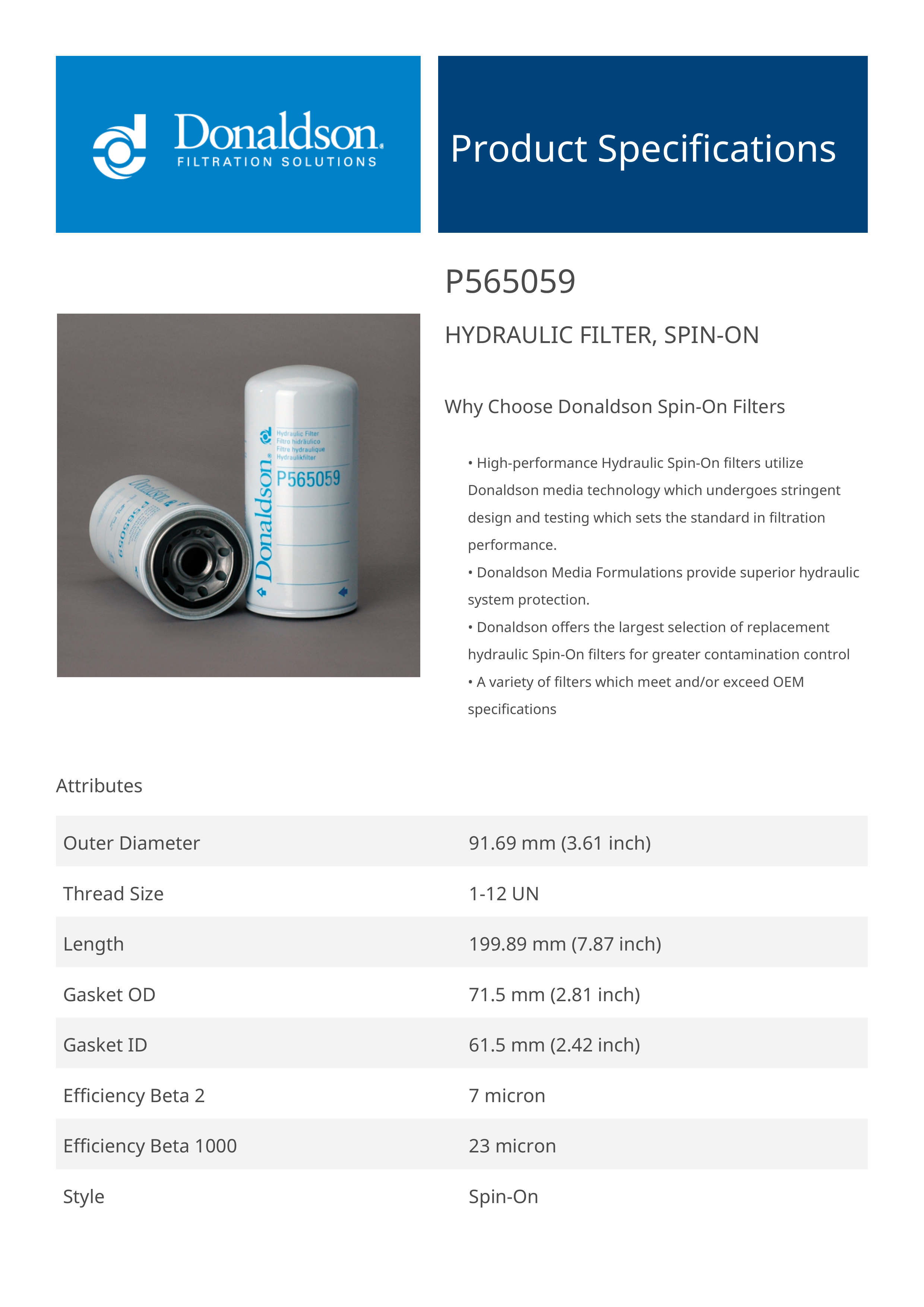 Donaldson P565059 Hydraulic Filter, Spin-On | Replaces the FilterFinder FF203165B
