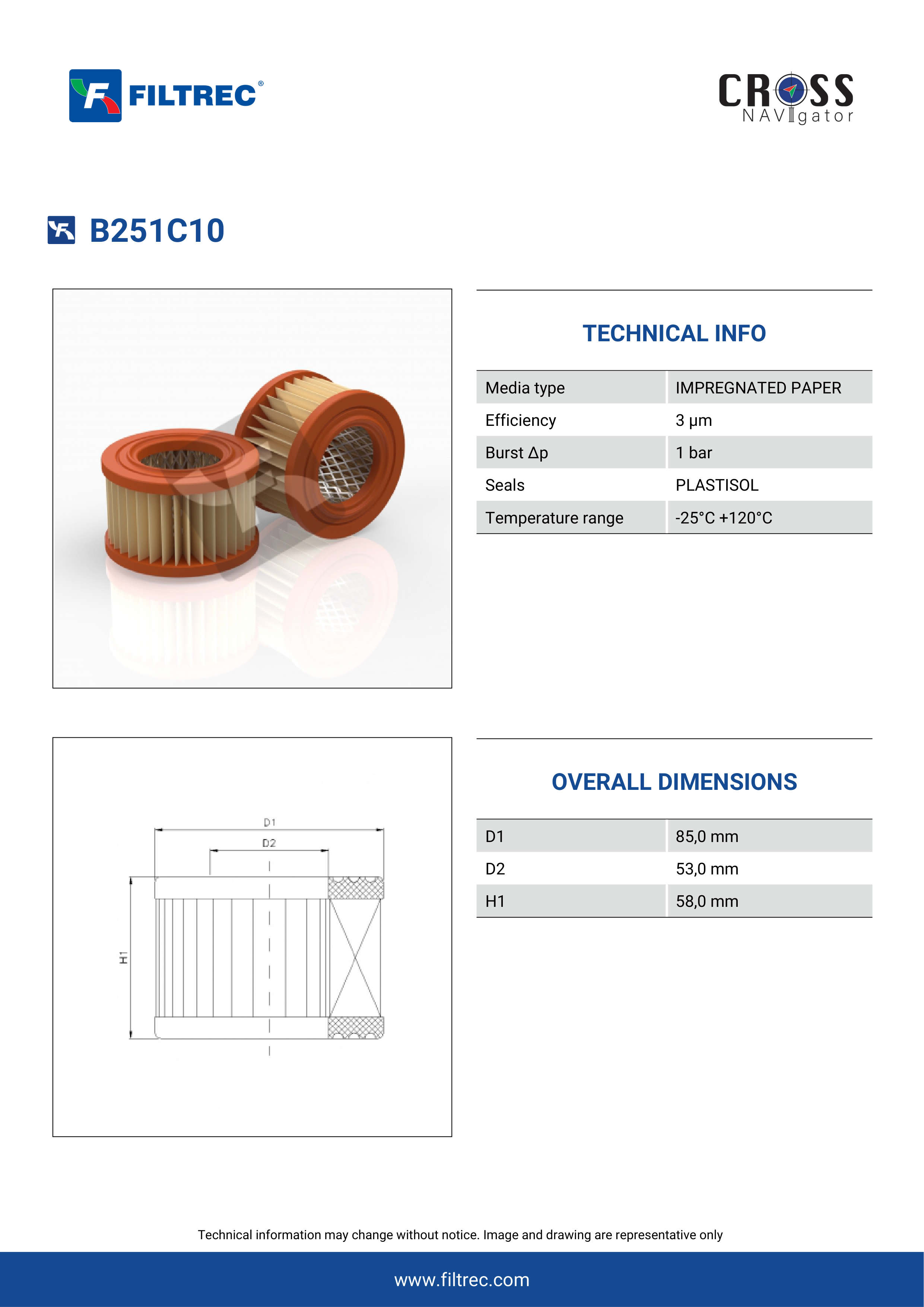The efficiency of the element is shown using the Micron (µ) and Beta (β) ratings. The micron rating indicates the size of the particle being filtered and the beta rating the efficiency, calculated as 1/β.