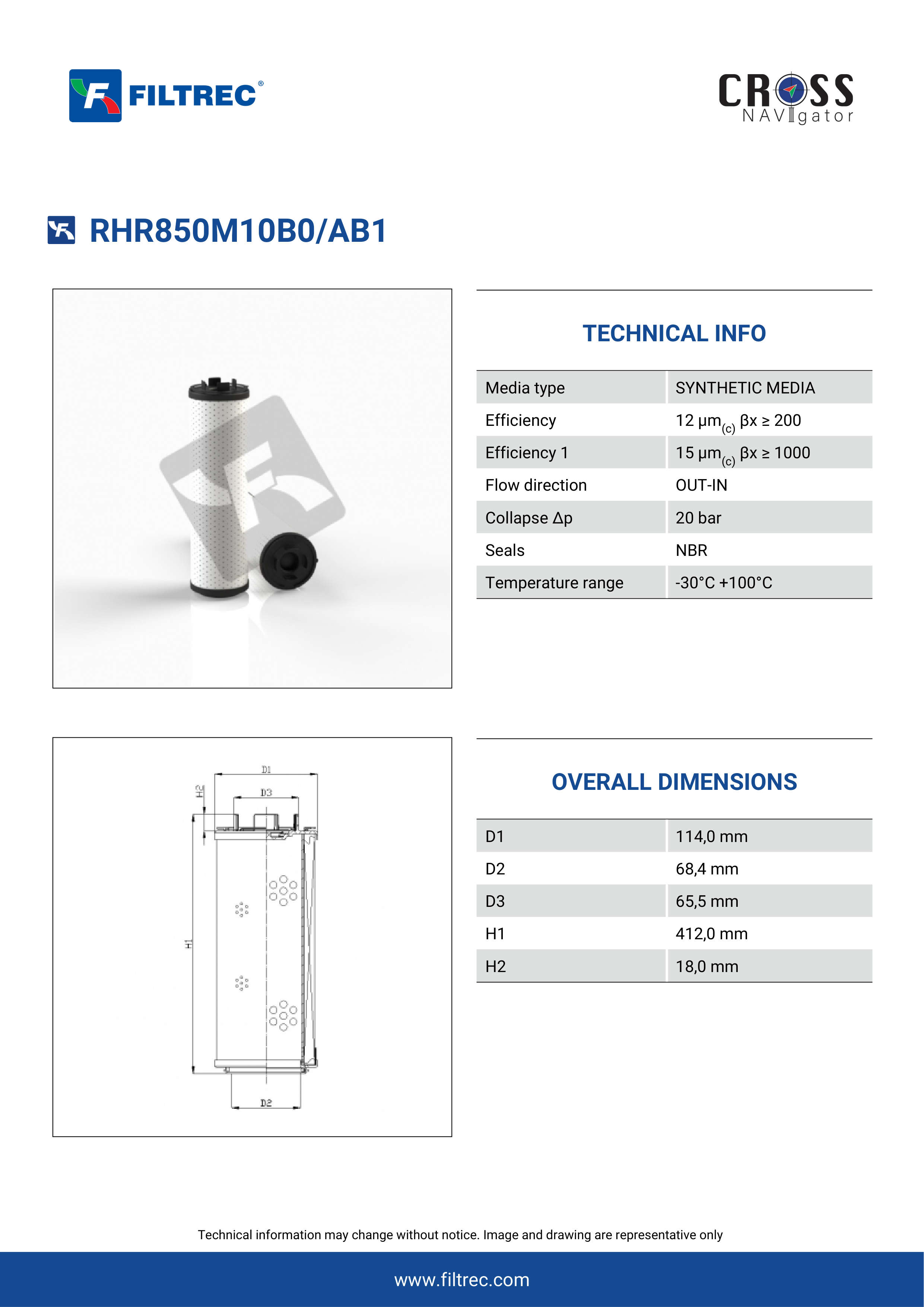 Genuine Filtrec RHR850M10B0/AB1. This Filtrec element is designed to meet or exceed the quality and performance of brand OEM’s ensuring superior filtration performance and long-lasting durability.Engineered with their high performance media and a durable design, the RHR850M10B0/AB1 provides reliable and consistent performance over its lifespan, even in harsh operating environments. When you order from FilterFinder, you can trust that you are getting a reliable and high-quality replacement filter that will keep your system running smoothly.