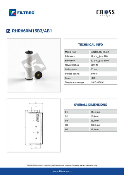 Filtrec RHR660M15B3/AB1 Replaces the FilterFinder FF204679B