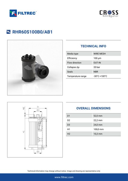 Filtrec RHR60S100B0/AB1 Replaces the FilterFinder FF204721B