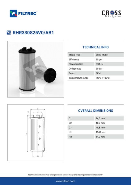 Filtrec RHR330S25V0/AB1 Replaces the FilterFinder FF204795B