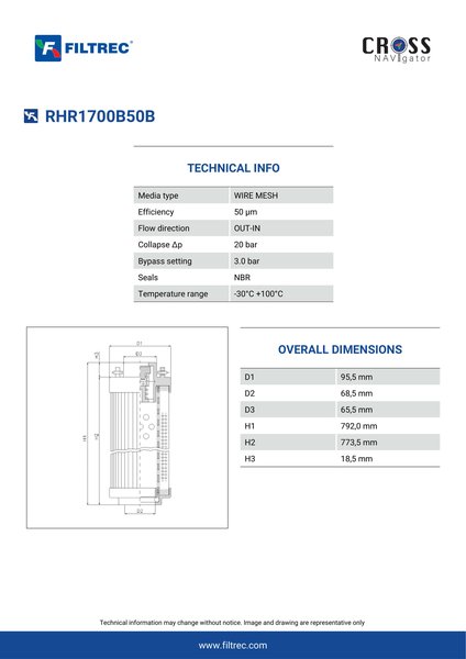The efficiency of the element is shown using the Micron (µ) and Beta (β) ratings. The micron rating indicates the size of the particle being filtered and the beta rating the efficiency, calculated as 1/β.