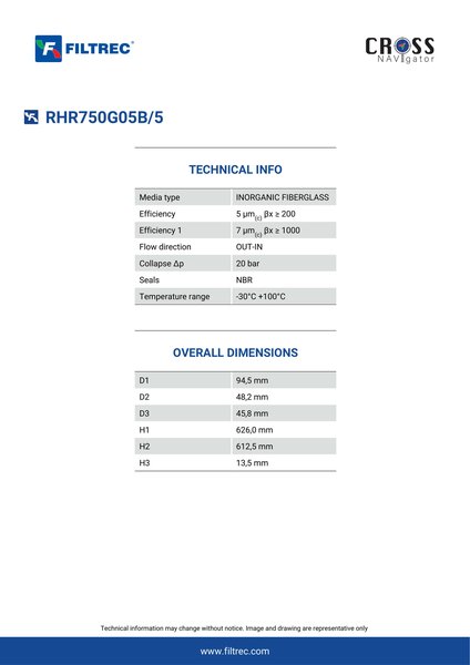 The efficiency of the element is shown using the Micron (µ) and Beta (β) ratings. The micron rating indicates the size of the particle being filtered and the beta rating the efficiency, calculated as 1/β.