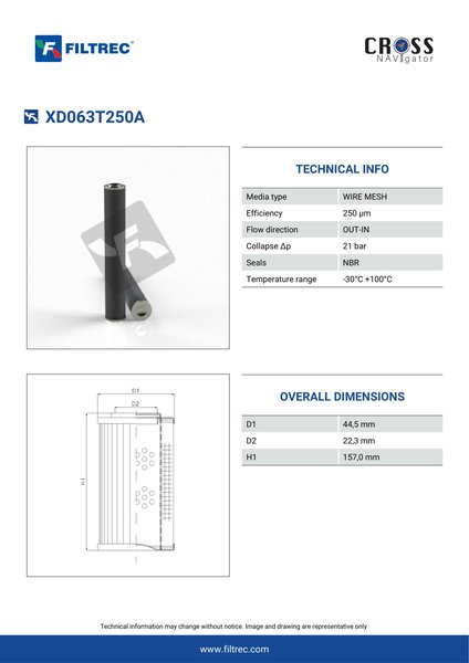 The efficiency of the element is shown using the Micron (µ) and Beta (β) ratings. The micron rating indicates the size of the particle being filtered and the beta rating the efficiency, calculated as 1/β.