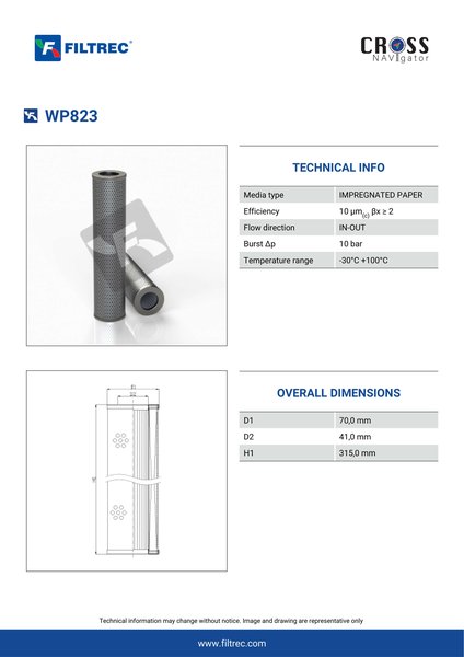 Genuine Filtrec WP823. This Filtrec element is designed to meet or exceed the quality and performance of brand OEM’s ensuring superior filtration performance and long-lasting durability.