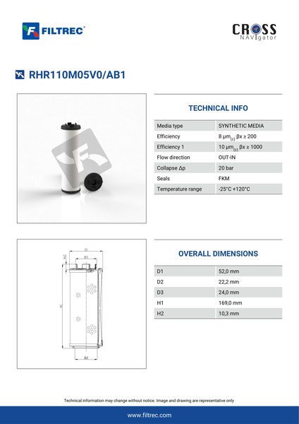 Filtrec RHR110M05V0/AB1 Replaces the FilterFinder FF208056B