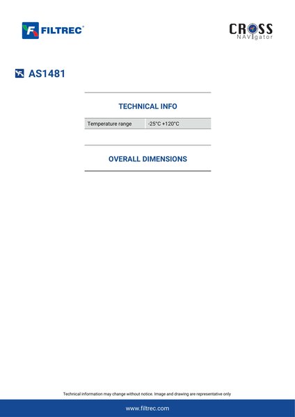 Filtrec AS1481 Replaces the FilterFinder FF211378B
