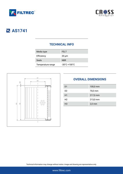 Filtrec AS1741 Replaces the FilterFinder FF214449B