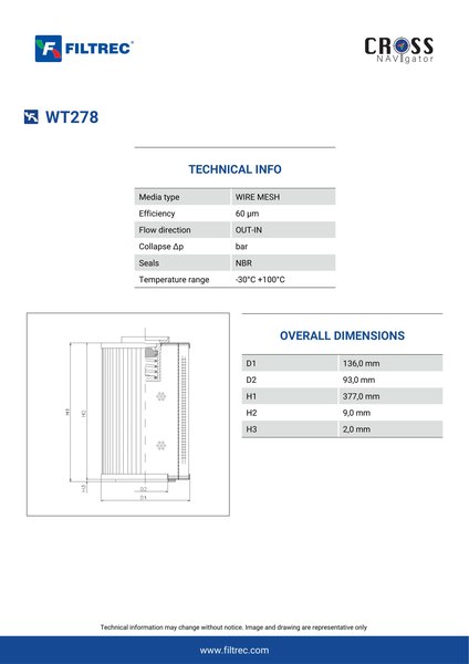 Engineered with their high performance media and a durable design, the WT278 provides reliable and consistent performance over its lifespan, even in harsh operating environments. When you order from FilterFinder, you can trust that you are getting a reliable and high-quality replacement filter that will keep your system running smoothly.