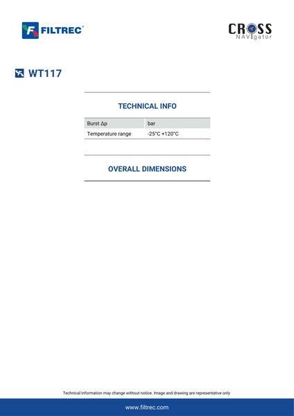 Genuine Filtrec WT117. This Filtrec element is designed to meet or exceed the quality and performance of brand OEM’s ensuring superior filtration performance and long-lasting durability.