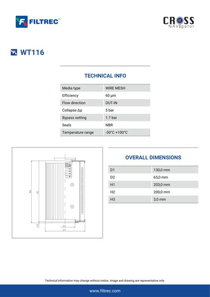Filtrec WT116 Replaces the FilterFinder FF214514B