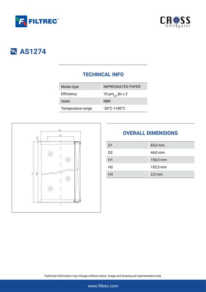 The efficiency of the element is shown using the Micron (µ) and Beta (β) ratings. The micron rating indicates the size of the particle being filtered and the beta rating the efficiency, calculated as 1/β.