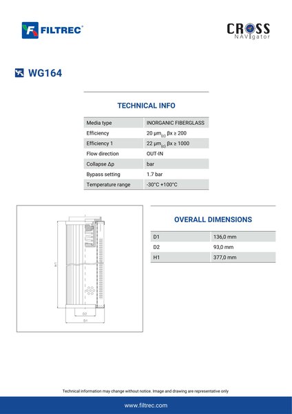 Engineered with their high performance media and a durable design, the WG164 provides reliable and consistent performance over its lifespan, even in harsh operating environments. When you order from FilterFinder, you can trust that you are getting a reliable and high-quality replacement filter that will keep your system running smoothly.