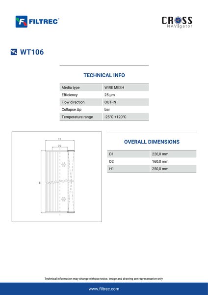 Genuine Filtrec WT106. This Filtrec element is designed to meet or exceed the quality and performance of brand OEM’s ensuring superior filtration performance and long-lasting durability.