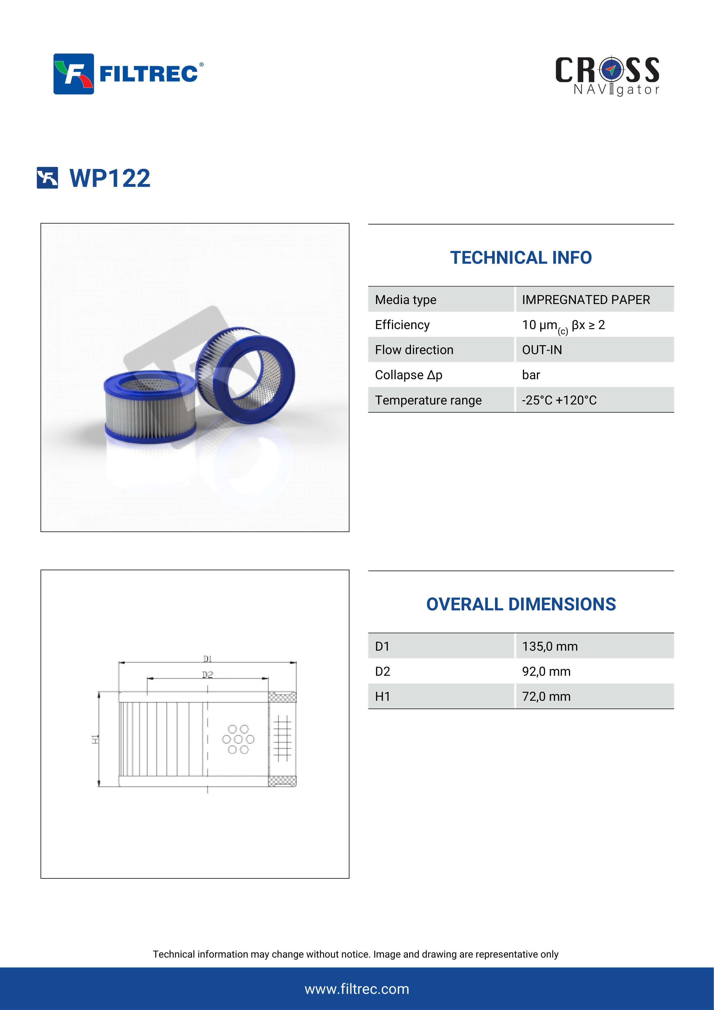 Genuine Filtrec WP122. This Filtrec element is designed to meet or exceed the quality and performance of brand OEM’s ensuring superior filtration performance and long-lasting durability.