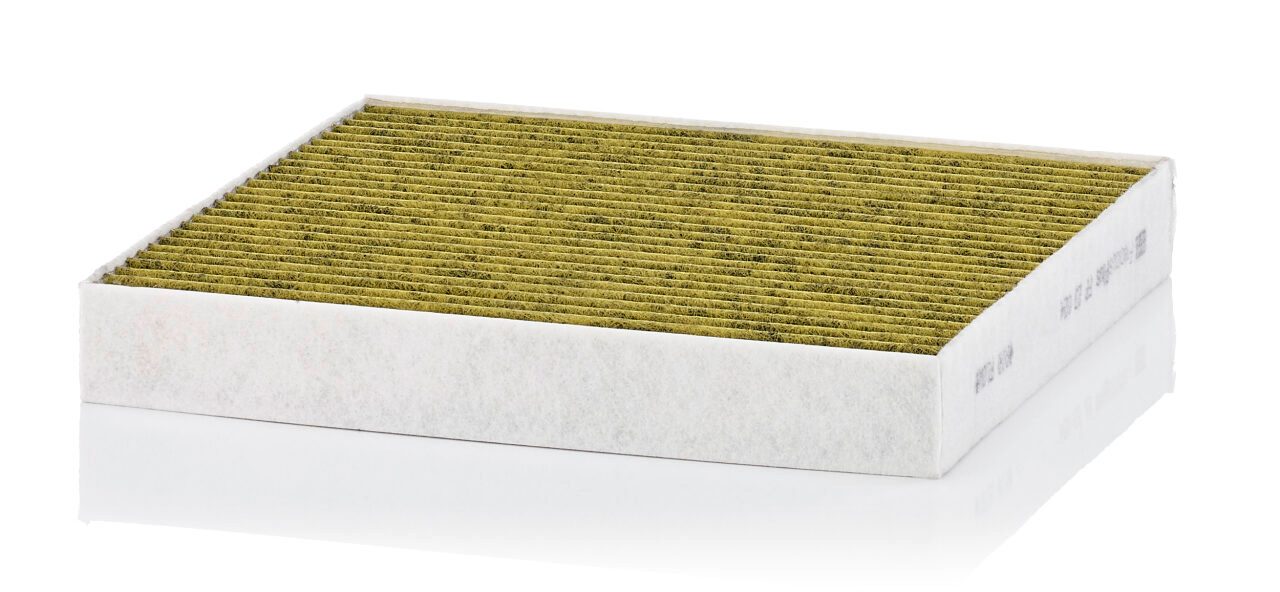 Biofunctional MANN-FILTER FreciousPlus cabin air filters - nearly 100% protection against nitrogen oxides, dust, allergens and mould - harmful gases and unpleasant odours are also eliminated and virus aerosols filtered. The three-layer filter technology absorbs almost 100% of allergens, reduces the growth of molds and bacteria by more than 98% and stops fine dust almost completely.