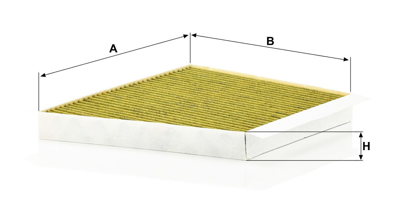 Biofunctional MANN-FILTER FreciousPlus cabin air filters - nearly 100% protection against nitrogen oxides, dust, allergens and mould - harmful gases and unpleasant odours are also eliminated and virus aerosols filtered. The three-layer filter technology absorbs almost 100% of allergens, reduces the growth of molds and bacteria by more than 98% and stops fine dust almost completely.Specification