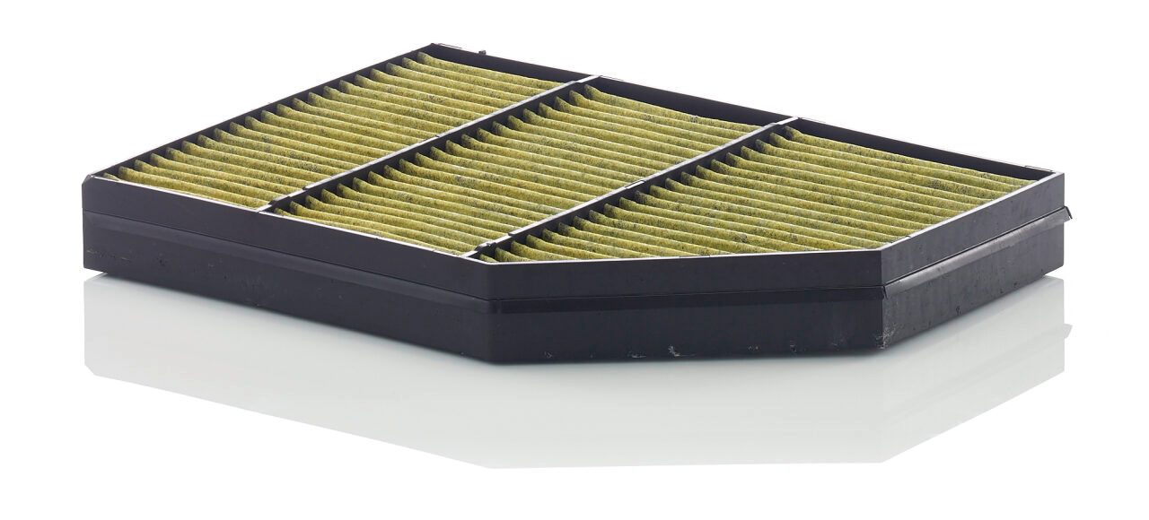 Biofunctional MANN-FILTER FreciousPlus cabin air filters - nearly 100% protection against nitrogen oxides, dust, allergens and mould - harmful gases and unpleasant odours are also eliminated and virus aerosols filtered. The three-layer filter technology absorbs almost 100% of allergens, reduces the growth of molds and bacteria by more than 98% and stops fine dust almost completely.