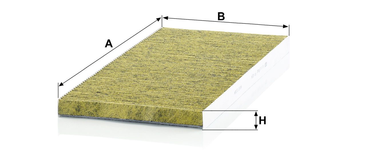 Biofunctional MANN-FILTER FreciousPlus cabin air filters - nearly 100% protection against nitrogen oxides, dust, allergens and mould - harmful gases and unpleasant odours are also eliminated and virus aerosols filtered. The three-layer filter technology absorbs almost 100% of allergens, reduces the growth of molds and bacteria by more than 98% and stops fine dust almost completely.Specification
