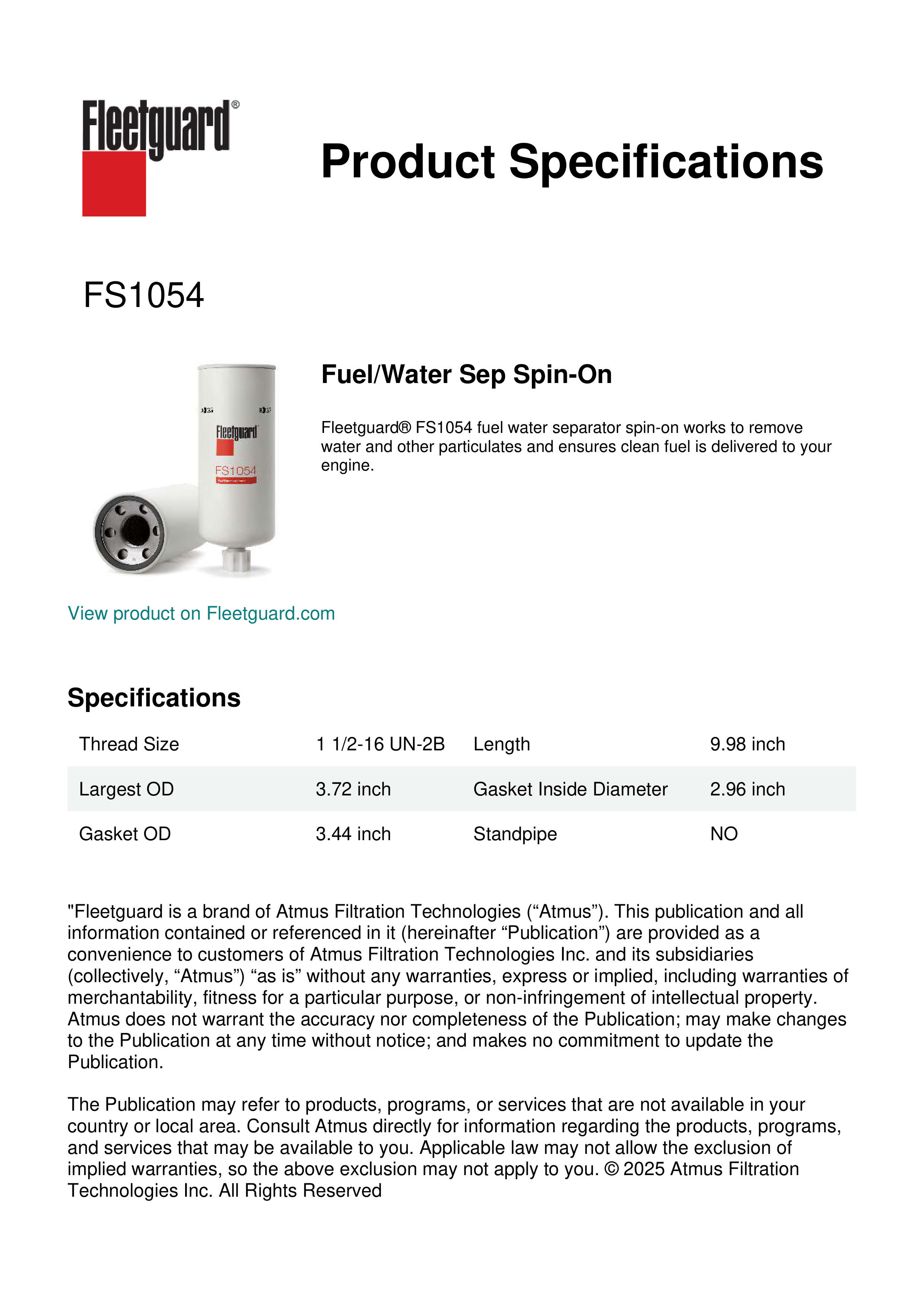 Genuine Fleetguard FS1054