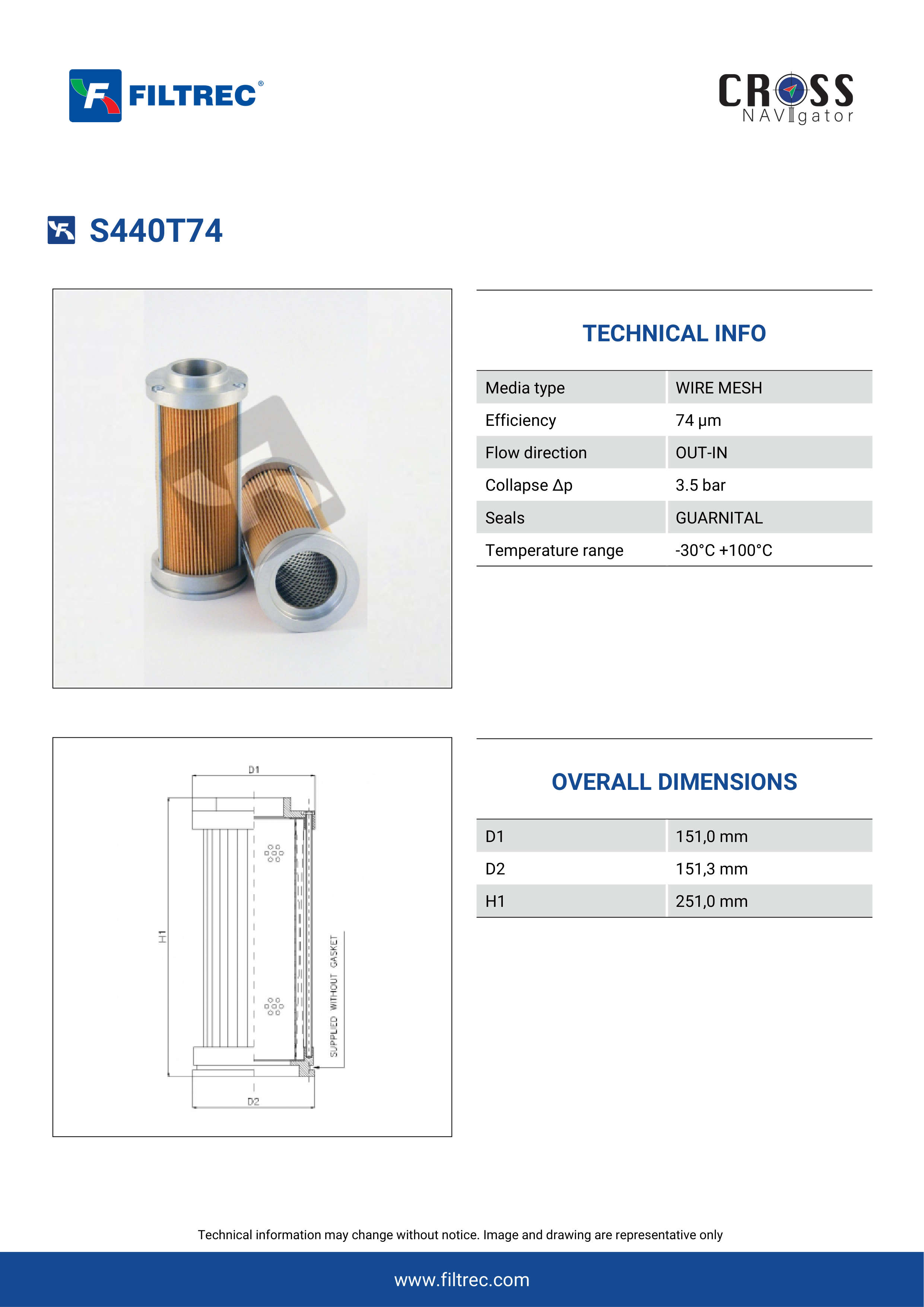 Genuine Filtrec S440T74. This Filtrec element is designed to meet or exceed the quality and performance of brand OEM’s ensuring superior filtration performance and long-lasting durability.