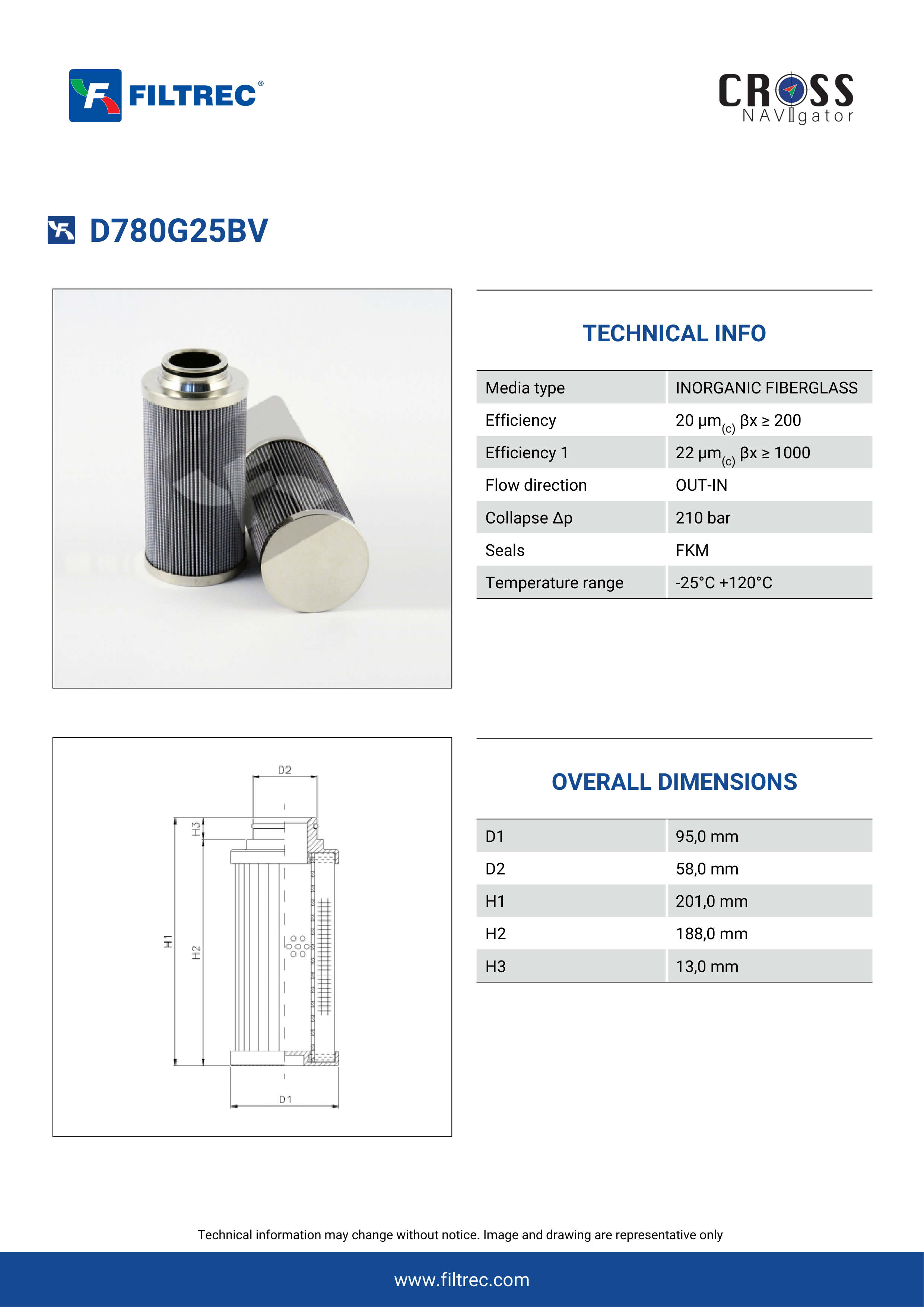 The efficiency of the element is shown using the Micron (µ) and Beta (β) ratings. The micron rating indicates the size of the particle being filtered and the beta rating the efficiency, calculated as 1/β.