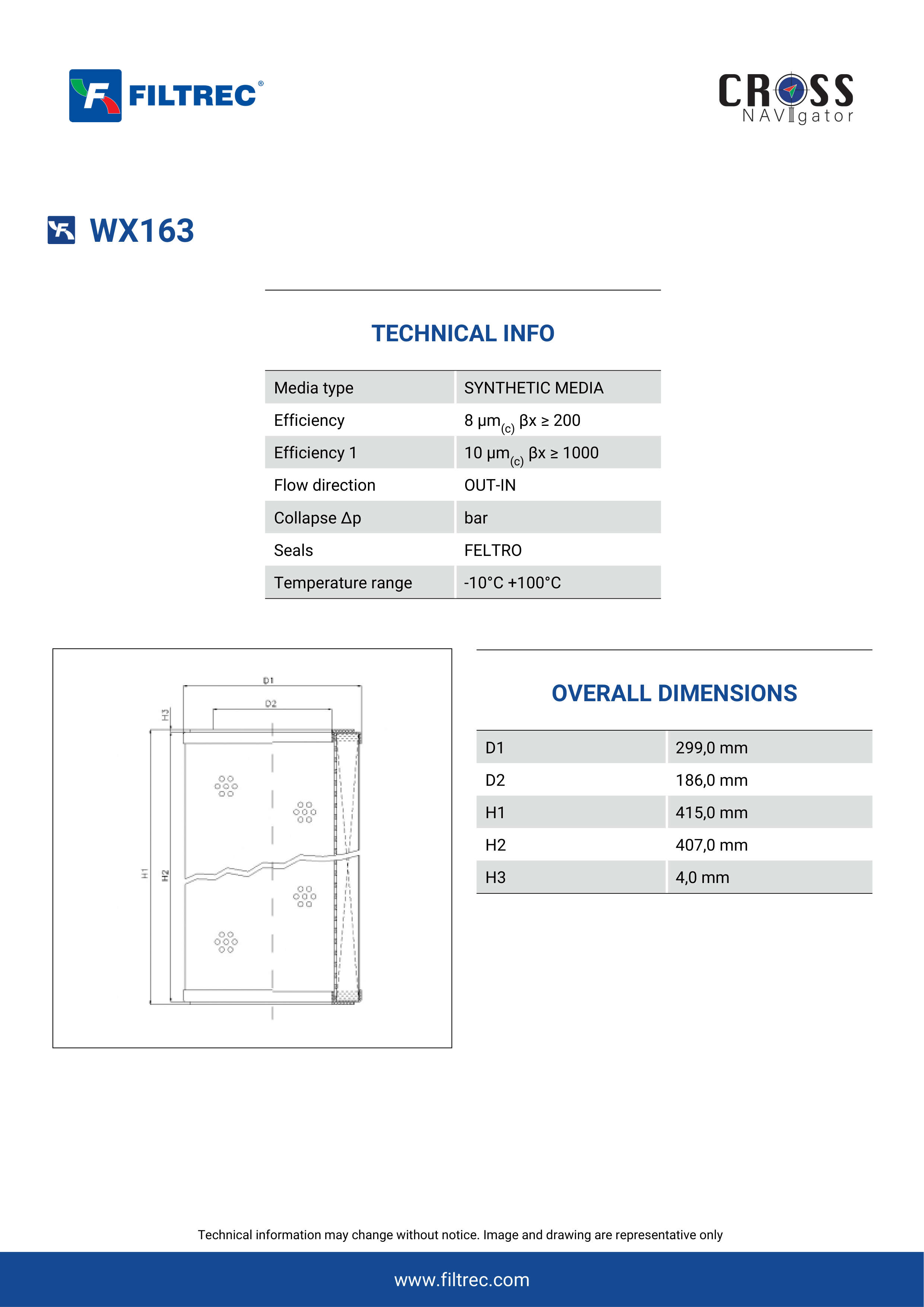 Genuine Filtrec WX163. This Filtrec element is designed to meet or exceed the quality and performance of brand OEM’s ensuring superior filtration performance and long-lasting durability.