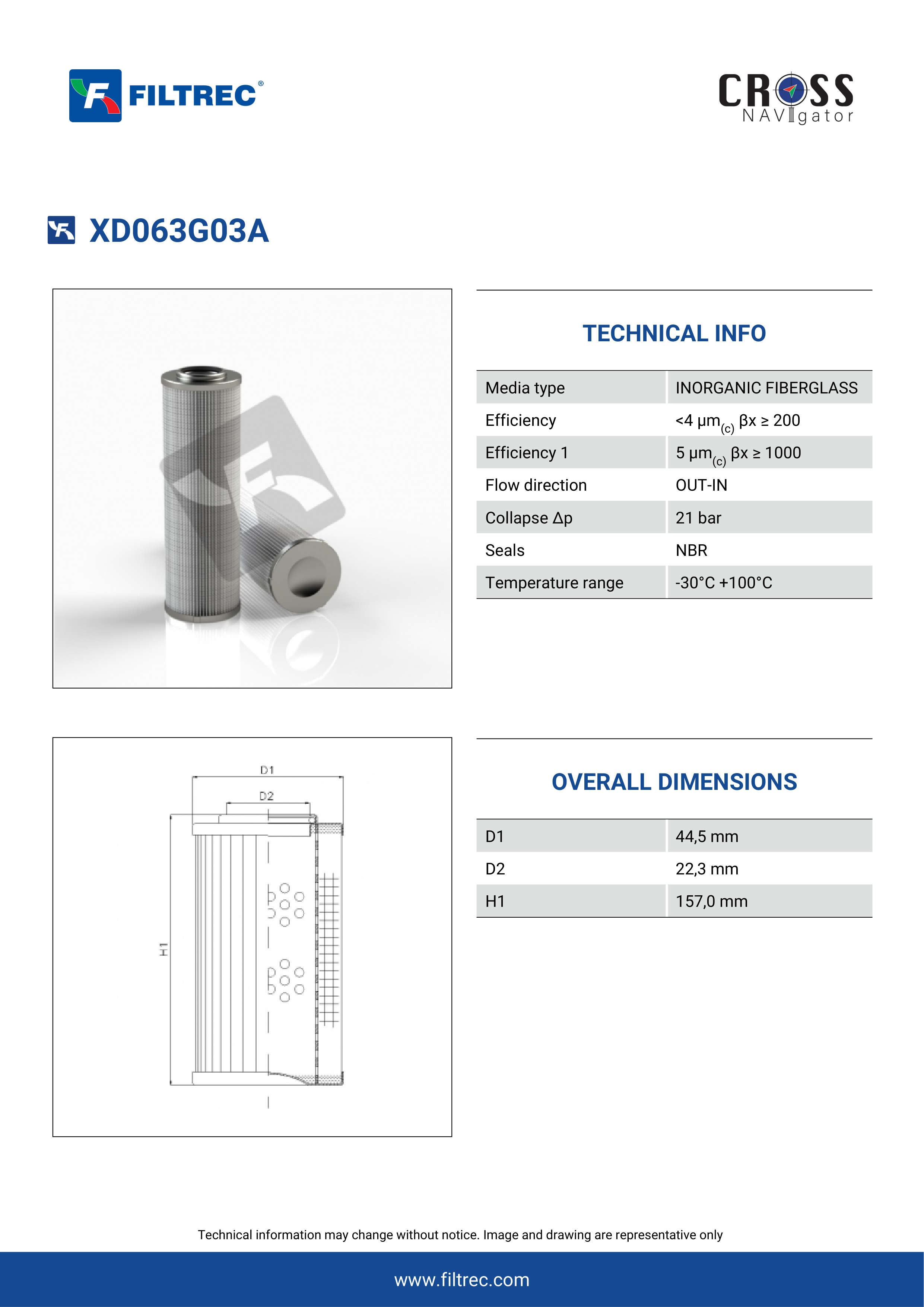 Genuine Filtrec XD063G03A. This Filtrec element is designed to meet or exceed the quality and performance of brand OEM’s ensuring superior filtration performance and long-lasting durability.