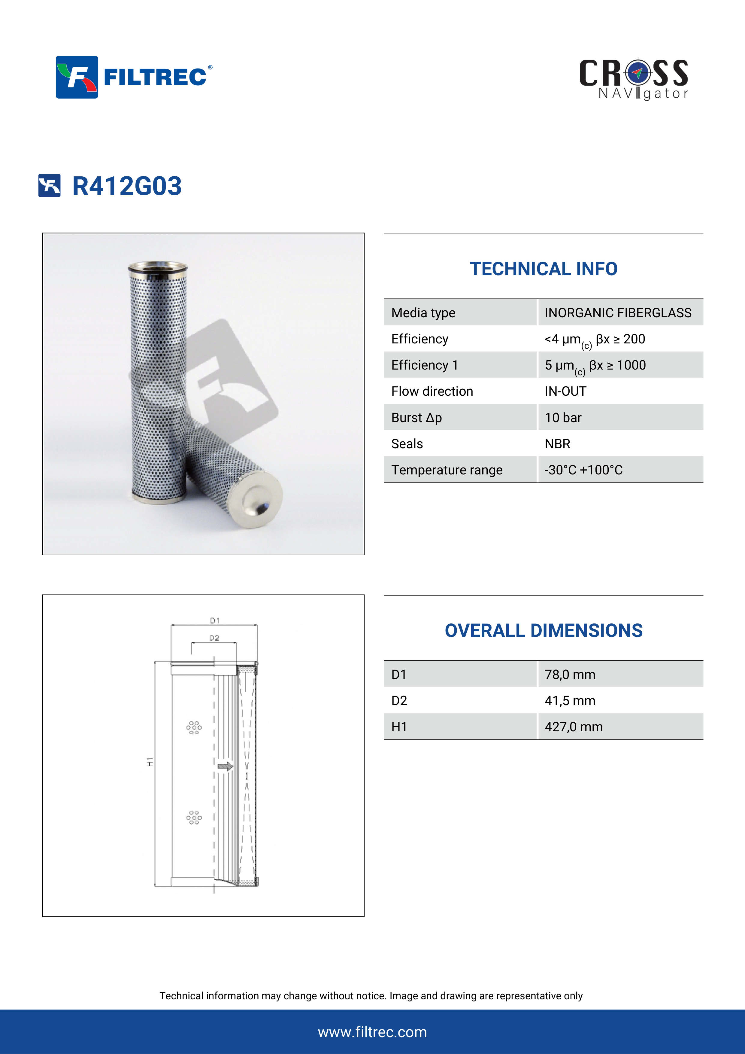 Genuine Filtrec R412G03. This Filtrec element is designed to meet or exceed the quality and performance of brand OEM’s ensuring superior filtration performance and long-lasting durability.