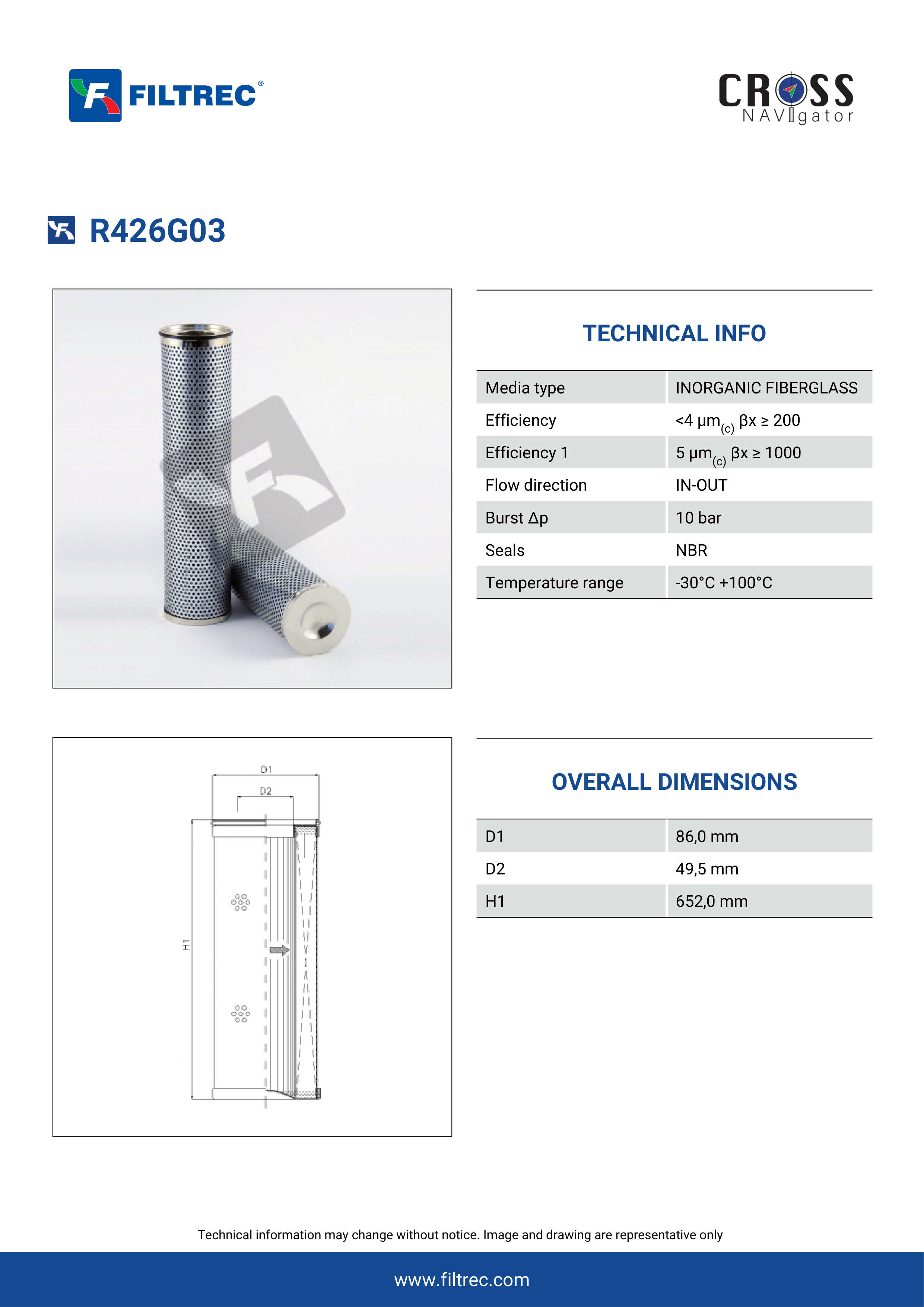 The efficiency of the element is shown using the Micron (µ) and Beta (β) ratings. The micron rating indicates the size of the particle being filtered and the beta rating the efficiency, calculated as 1/β.