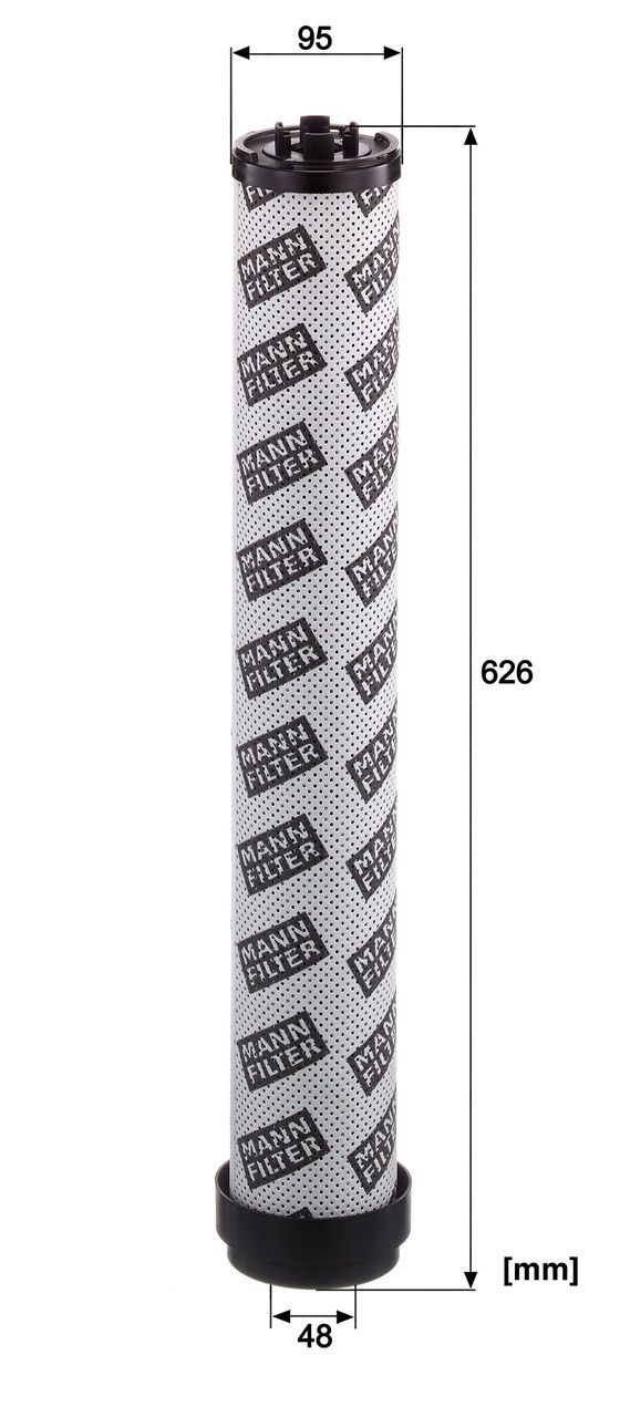 The efficiency of the element is shown using the Micron (µ) and Beta (β) ratings. The micron rating indicates the size of the particle being filtered and the beta rating the efficiency, calculated as 1/β.