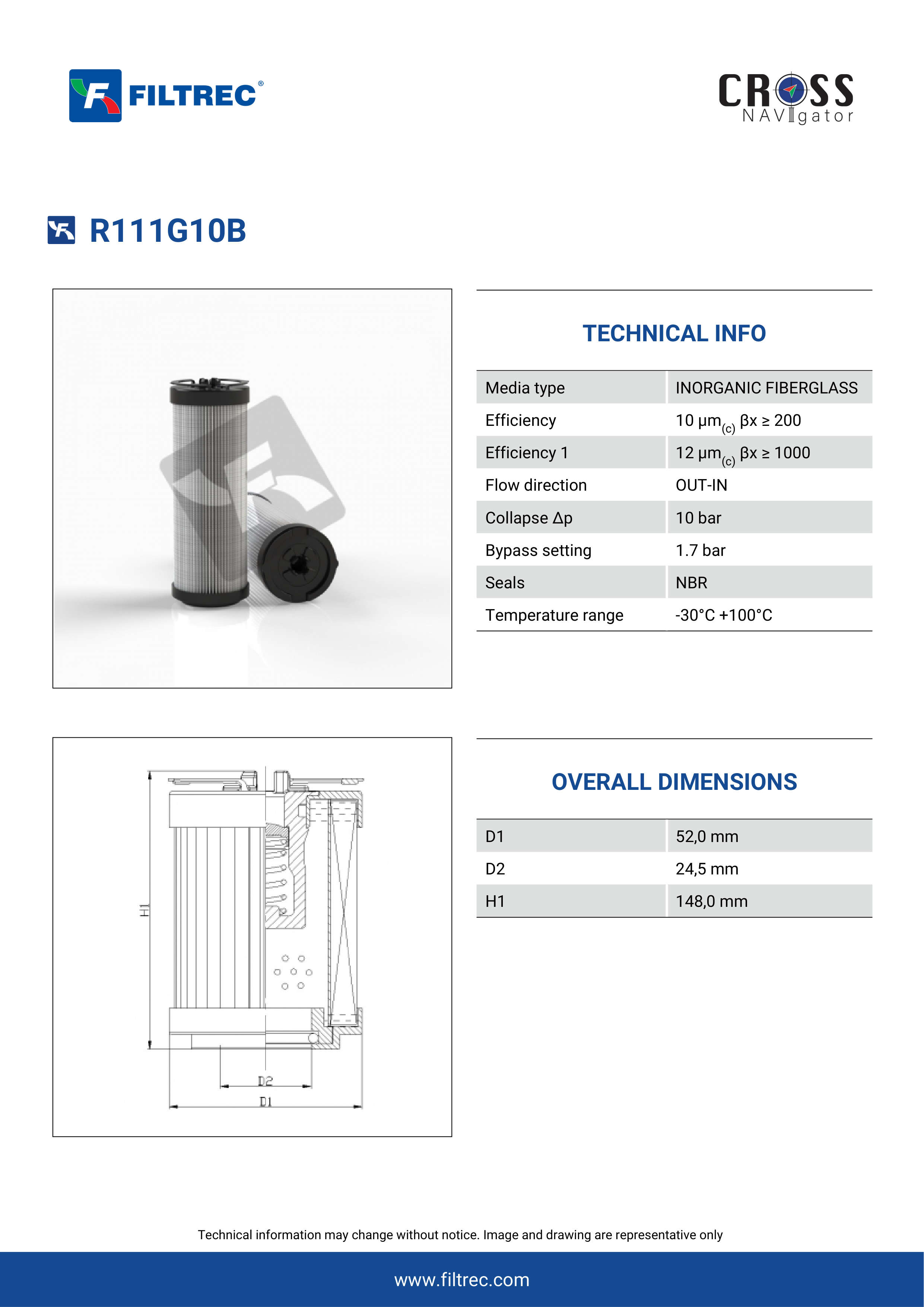 Genuine Filtrec R111G10B. This Filtrec element is designed to meet or exceed the quality and performance of brand OEM’s ensuring superior filtration performance and long-lasting durability.