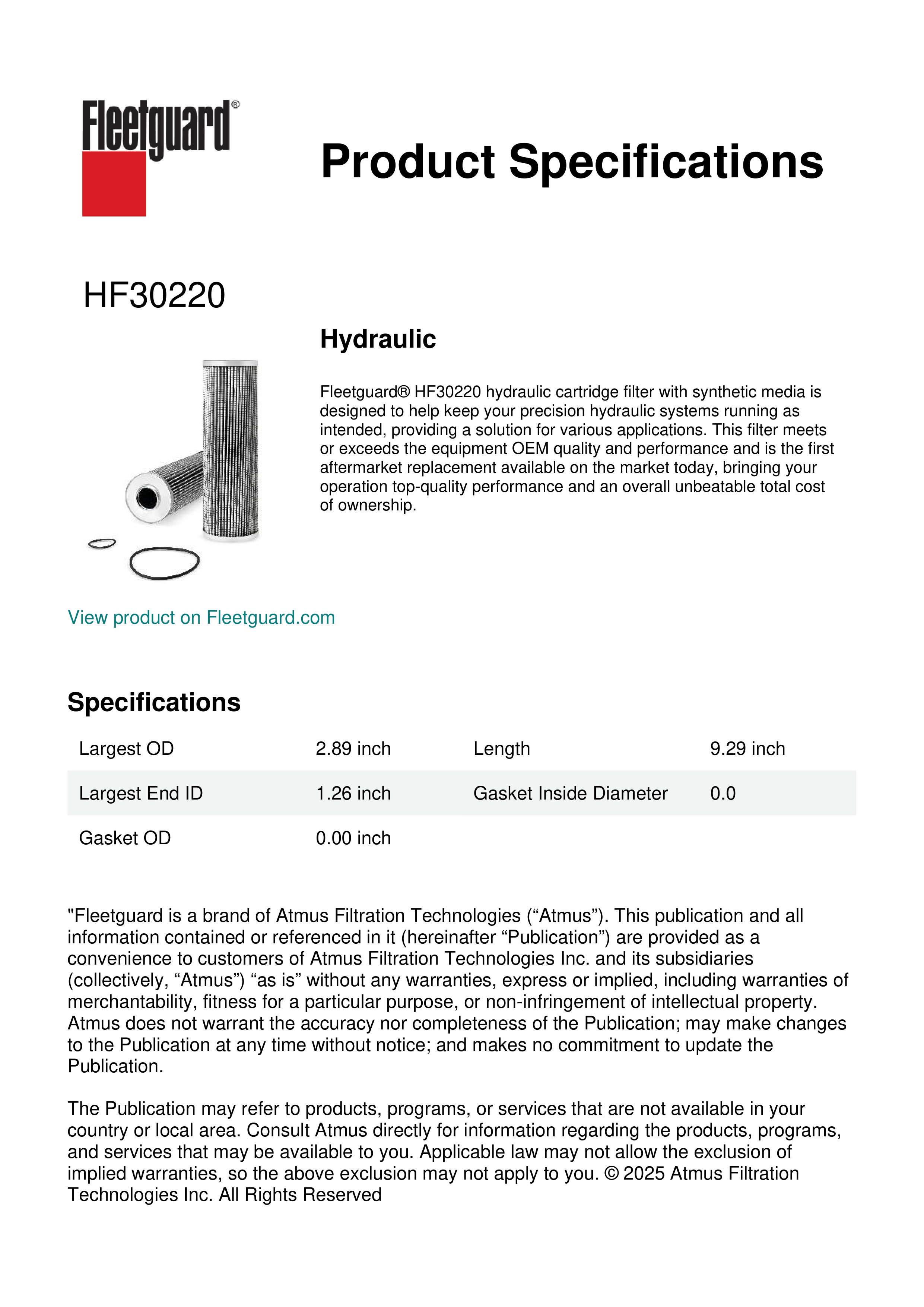 Genuine Fleetguard HF30220