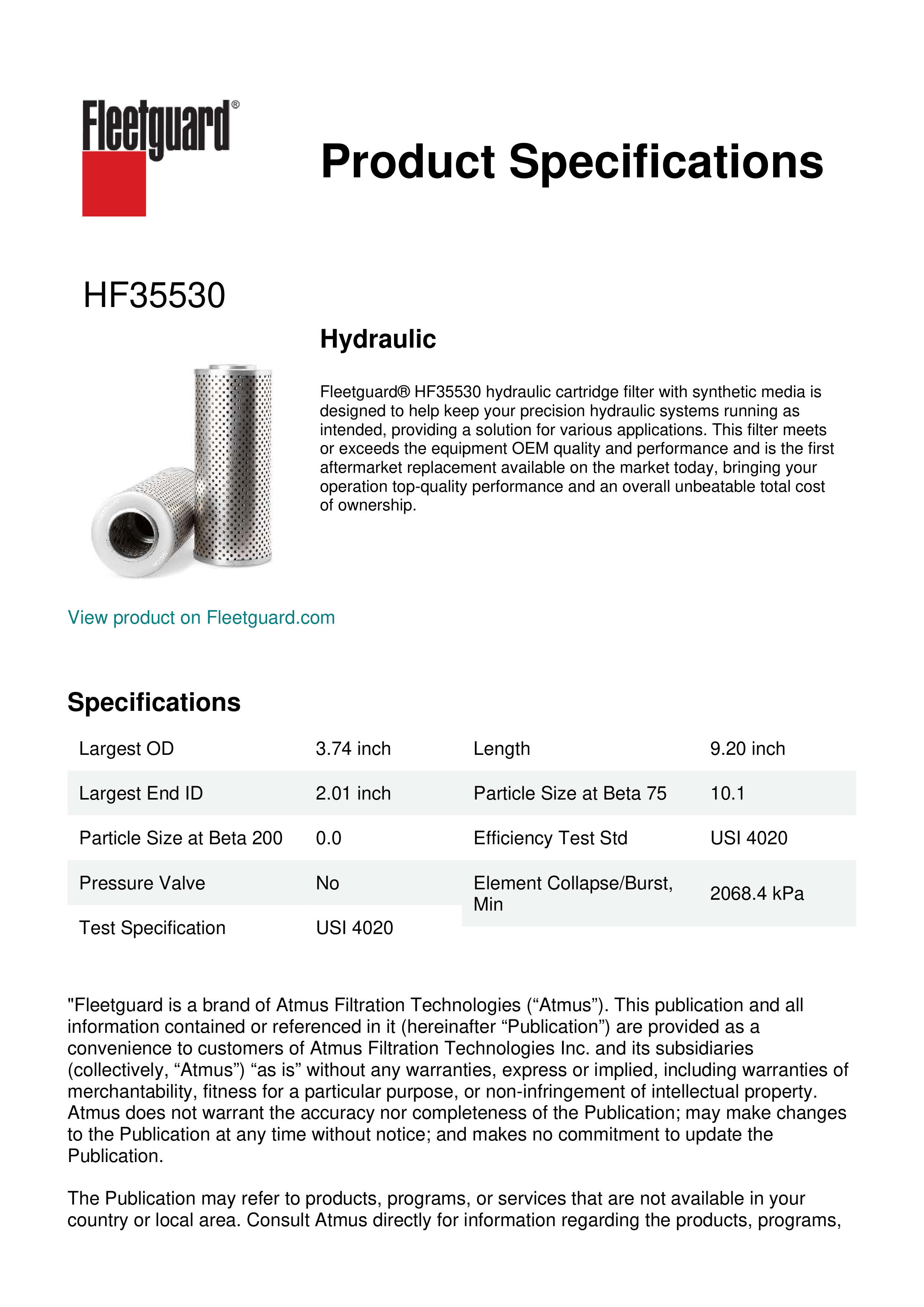 Fleetguard HF35530 Hydraulic Filters