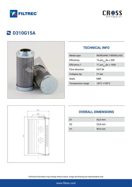 As the Genuine MP Filtri HP0371A16ANP01