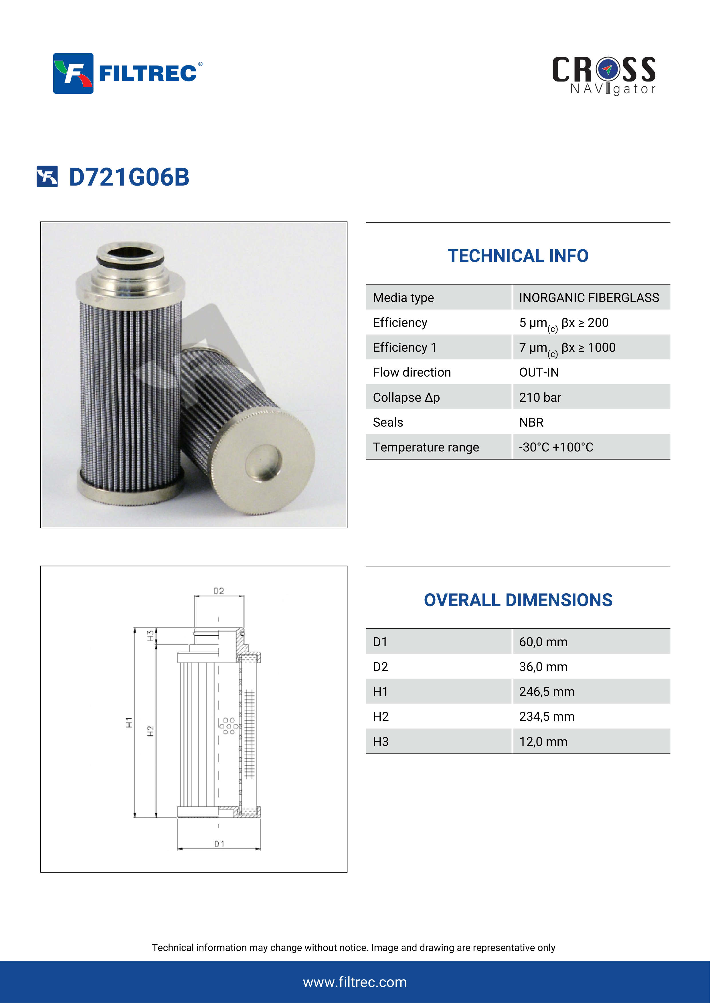 The efficiency of the element is shown using the Micron (µ) and Beta (β) ratings. The micron rating indicates the size of the particle being filtered and the beta rating the efficiency, calculated as 1/β.