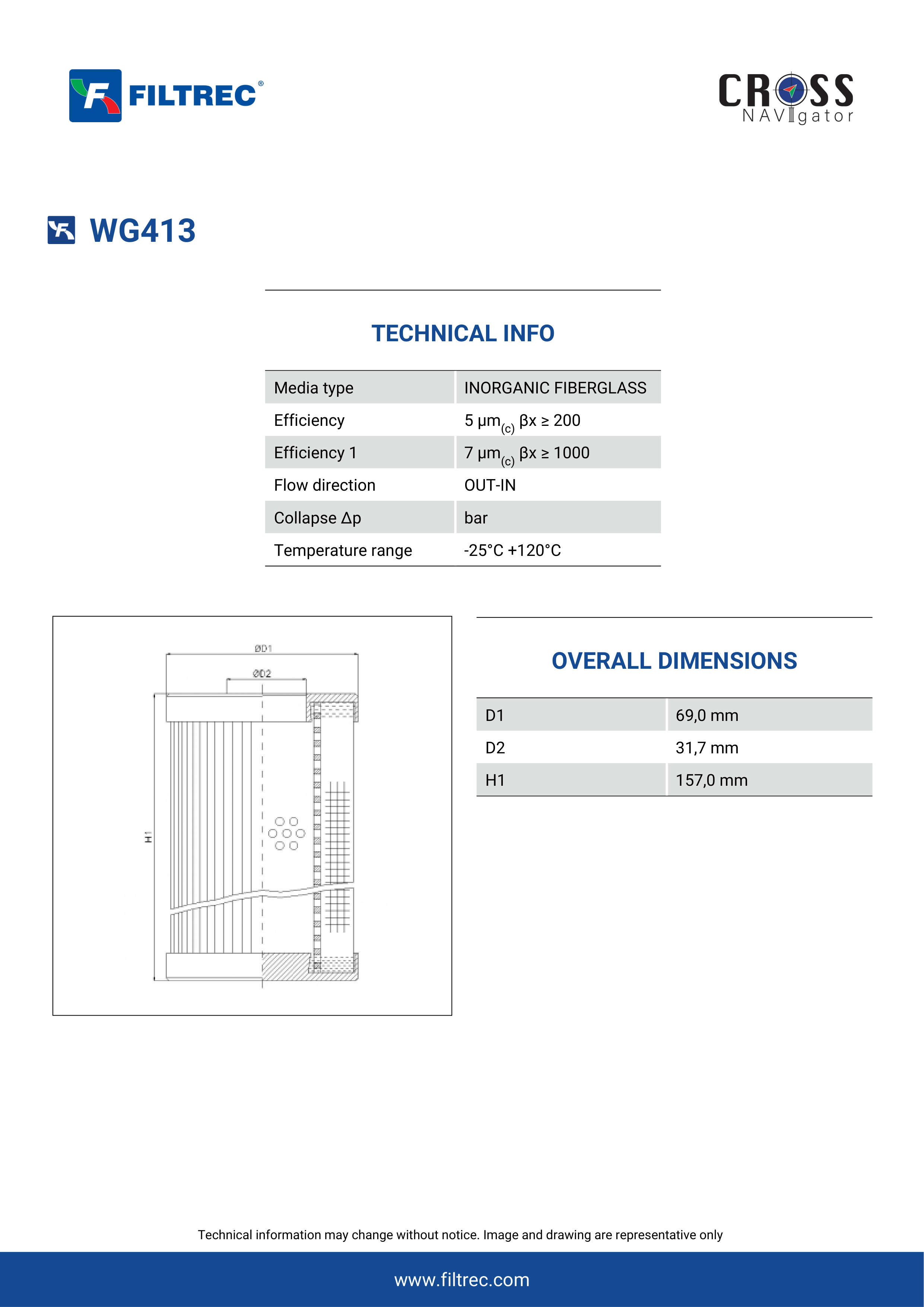 Genuine Filtrec WG413. This Filtrec element is designed to meet or exceed the quality and performance of brand OEM’s ensuring superior filtration performance and long-lasting durability.