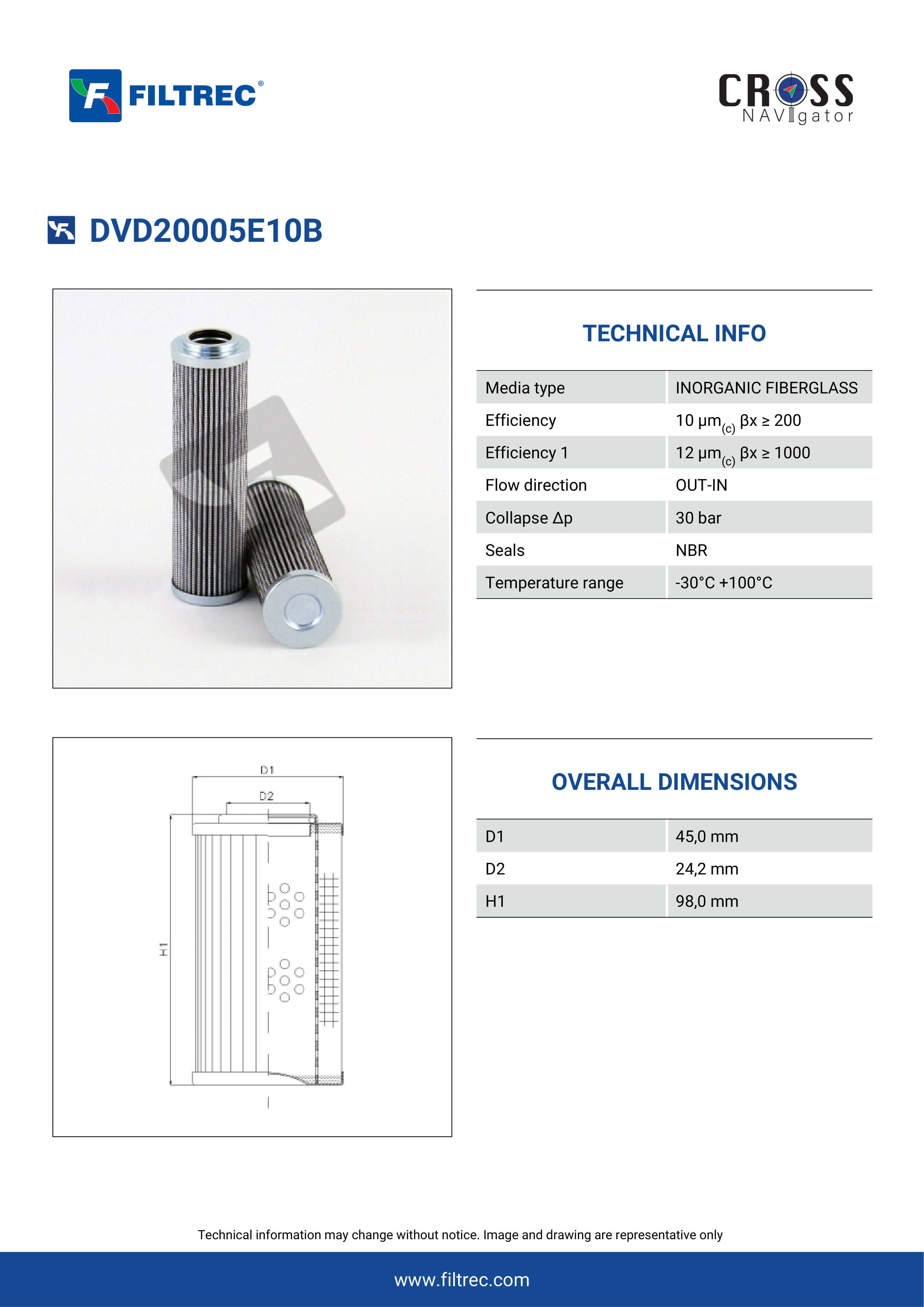 Genuine Filtrec DVD20005E10B. This Filtrec element is designed to meet or exceed the quality and performance of brand OEM’s ensuring superior filtration performance and long-lasting durability.